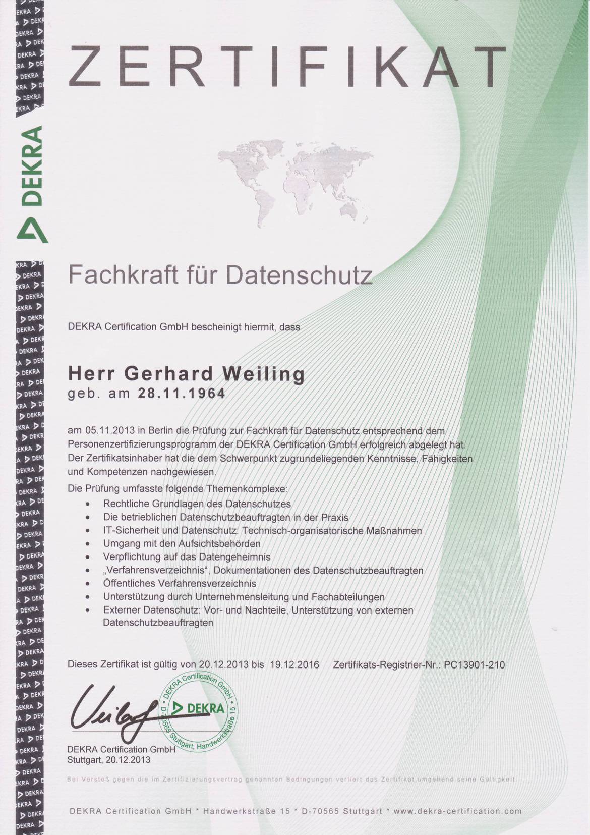 Als DEKRA zertifizierte Datenschutzfachkraft kümmere ich mich nicht nur in unserem Unternehmen um den Datenschutz. Auch für Ihr Untenehmen kann ich nach §4 f(1,2) BDSG den Datenschutz übernehmen.